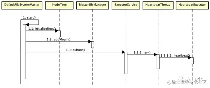 start启动流程概述:提交HeartbeatThread(心跳线程) 进行检测校验,提交的线程是:LostWorkerDetectionHeartbeatExecutor,对worker的心跳进行检测。