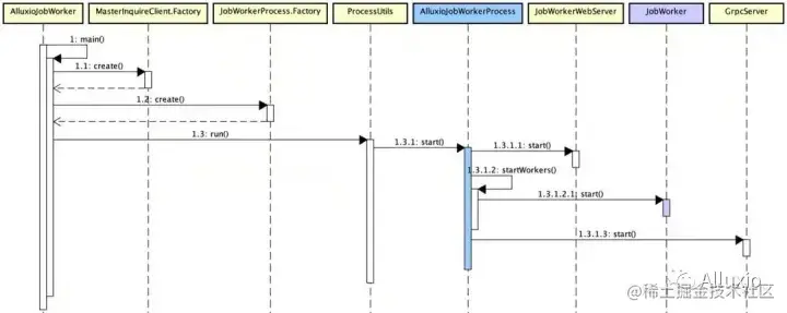 - 创建AlluxioJobWorkerProcess进程对象,并执行start方法,具体如下: