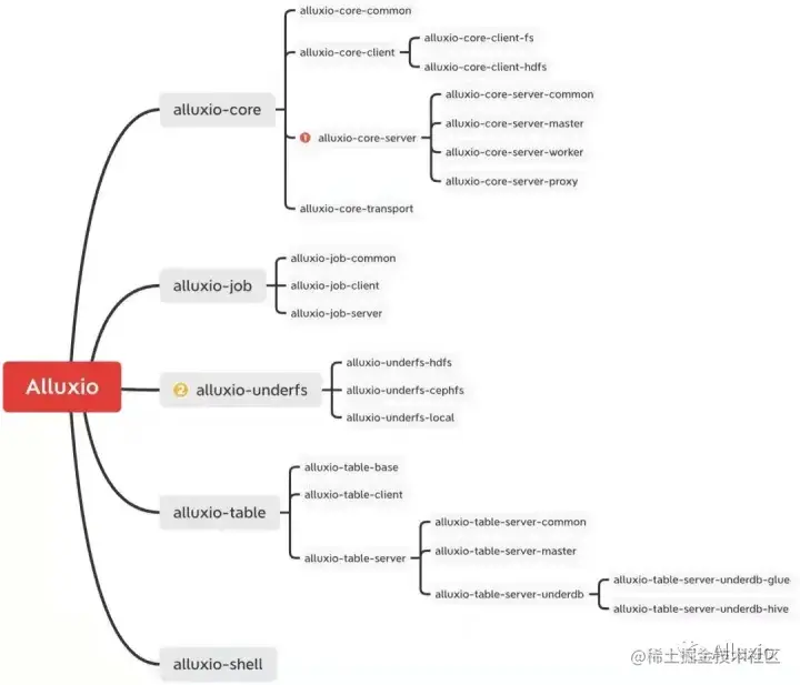 Alluxio源码的项目结构可简化如下几个核心模块: