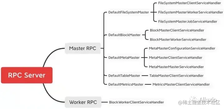 Master RPC和Worker RPC注册服务,都是基于Handler实现grpc定义的方法,如下所示:
