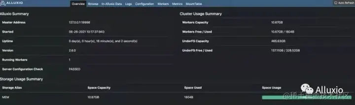 - http://localhost:30000,页面查看alluxio worker ui界面,默认端口:30000