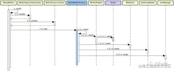 - 创建AlluxioWorkerProcess进程对象,并执行start方法,具体如下: