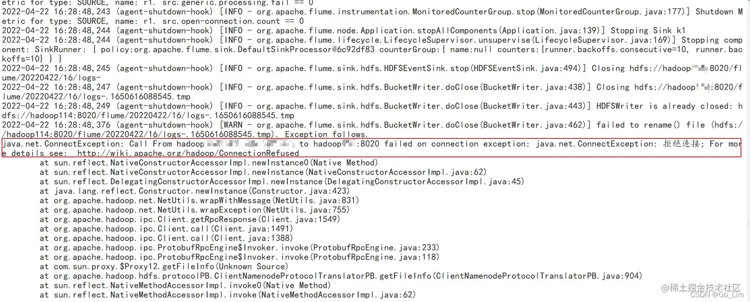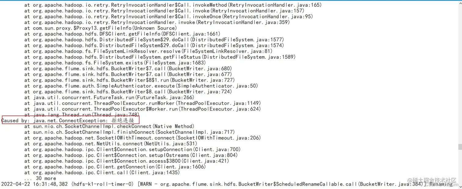 flume报错记录:java.net.ConnectException:** **拒绝连接; For more details see: wiki.apache.org/hadoop/Conn…