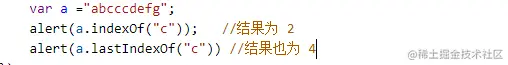 - lastIndexOf 是查某个指定的字符串在字符串最后一次出现的位置(索引值)(从右往左)