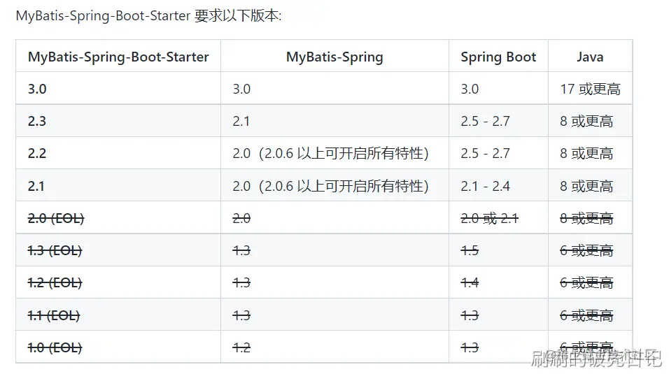 SpringBoot与MyBatis-Spring-Boot-Starter版本要求