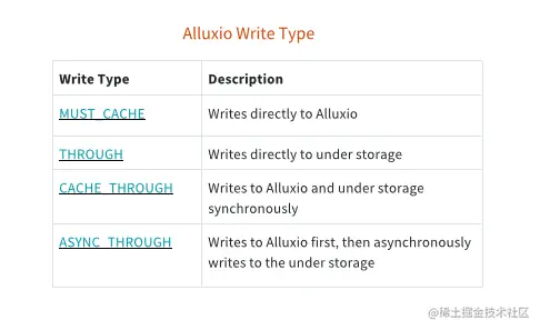 为什么说集成需要比较小心,其实作为一个缓存层,我们不是在所有场景下完全的支持强一致性的,因为我们的写入有很多种方式,第一种是MUST_CACHE,在这种方式下,我们会把数据直接写入Alluxio,不写入底层的 HDFS集群或者S3集群。第二种方式叫THROUGH,一般不太关心写入的数据,后面要再被重复应用,所以不想把这个数据写回缓存层,直接写回底层的分布式存储。第三种是CACHE_THROUGH,就是同时写入Alluxio系统和底层的 S3或者HDFS。第四种方式是Eventual consistent的模式,写回Alluxio是strong consistent,但最后写回底层的存储,是一个Eventual consistent的模式。很多人会采用这种模式,因为比如说 object store s3的rename特别的昂贵,这种情况下,我们推荐通过ASYNC_THROUGH的方式写入,但有时候这个方式,对不同的基于Iceberg的数据湖方案就会有一些不同的影响。