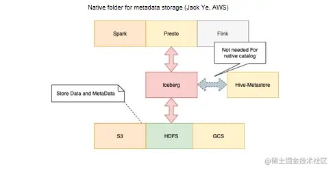 1.第一份credit要重点给亚马逊公司AWS 的Jack Ye,他做了一个 native folder的支持,这个在Iceberg叫做Hadoop catalog,盘活了我们的很多功能,解决了我们非常多的痛点。