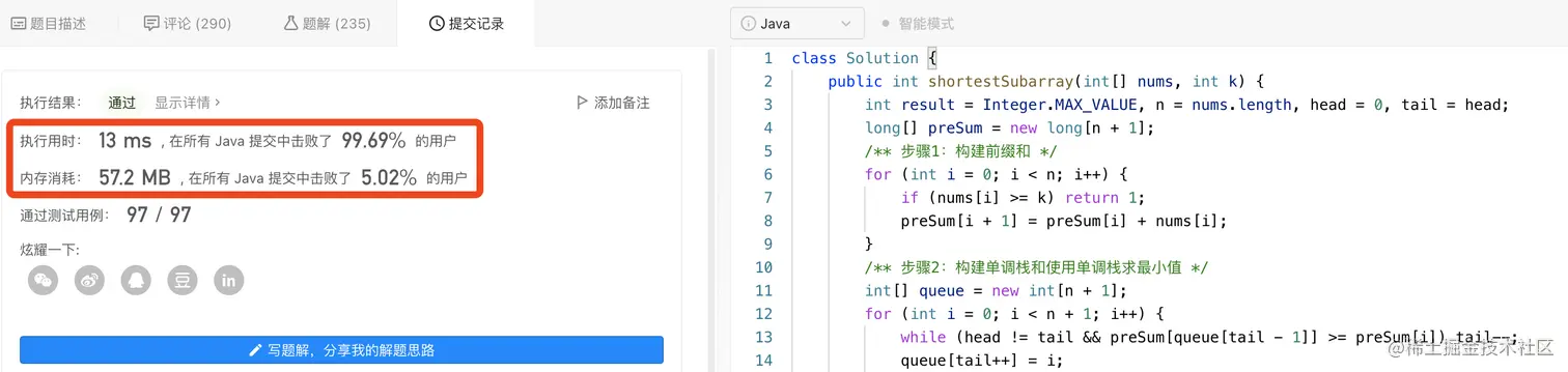 public int shortestSubarray(int[] nums, int k) {