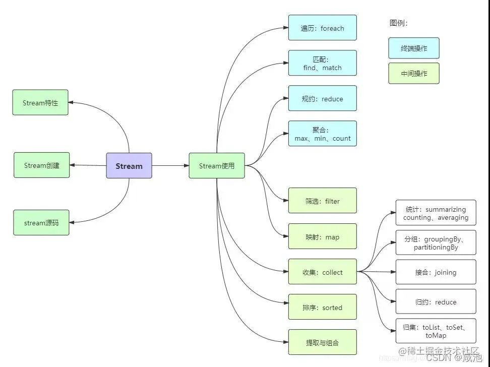 终端操作,每个流只能进行一次终端操作,终端操作结束后流无法再次使用。终端操作会产生一个新的集合或值。