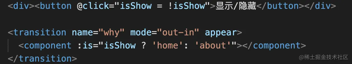 [注意⚠️] isShow? 'home' : 'about' 是对应的组件!(可以创建试试看哦)