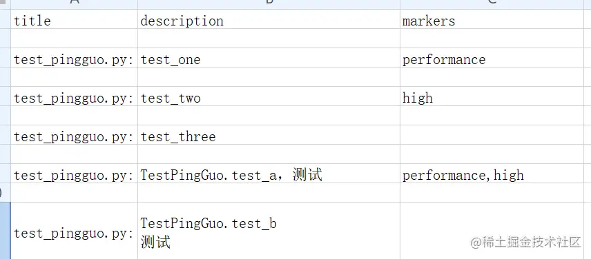 主要就是把搜集到的case的标题,描述和markers这3样写到 csv 文件中。