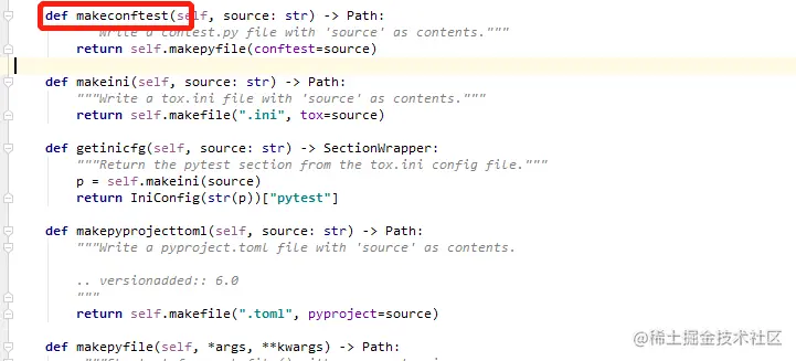 不仅如此,还可以创建其他的文件,比如conftest。这是源码,有兴趣的可以进去一探究竟。