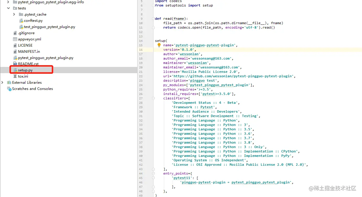 其实这是 pytest 的一个特性库,通过这个setuptools,我们的插件代码可以通过pip安装并上传到PyPI。