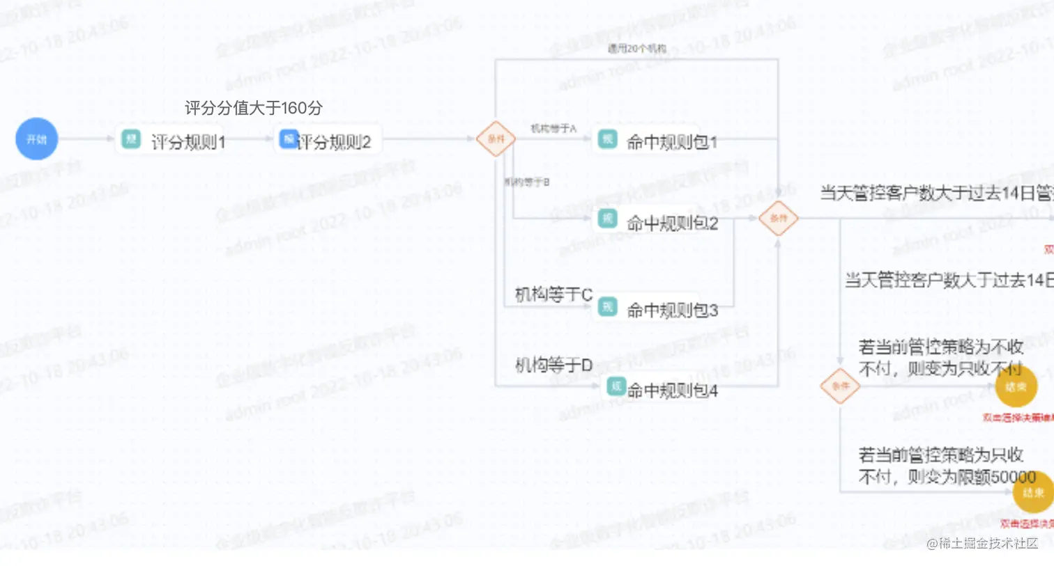 最近公司的项目上有个需求,还挺有分享价值的,这边做个记录。需求大致如下,下面的一个流程图,点击条件线上选择的内容,必须是前面配置过的节点,如果不是,需要在保存的时候做强校验提示。