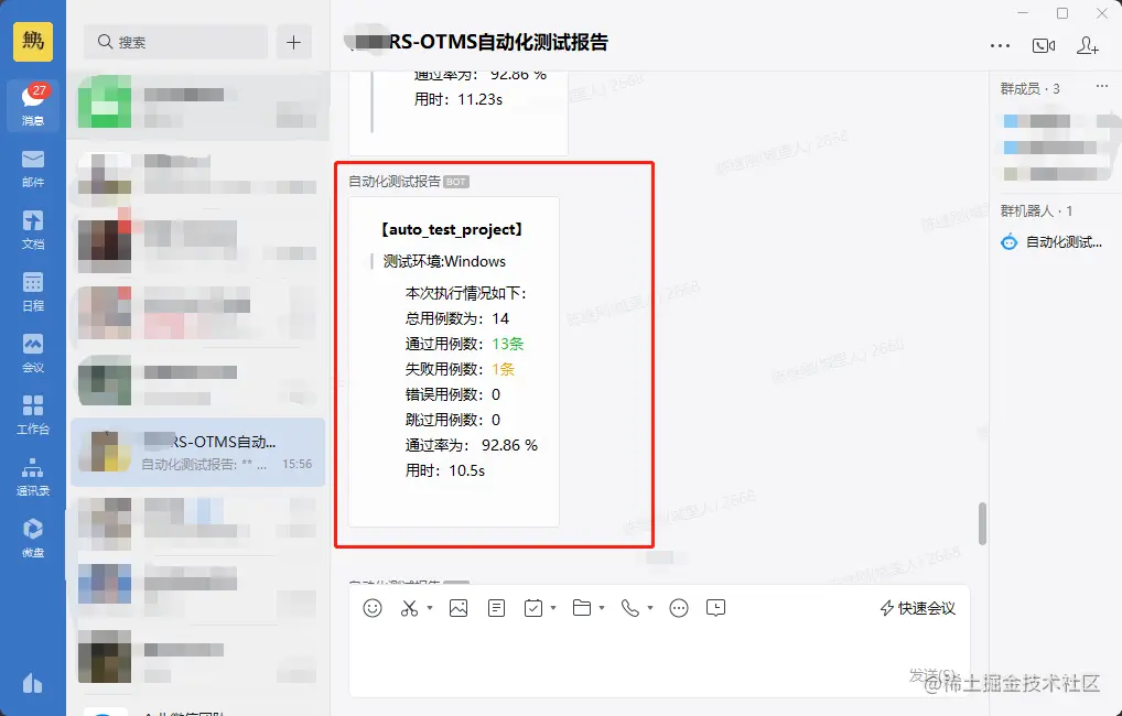 - 不管是接口自动化测试还是UI自动化测试都可以通过这种方式来实现消息通知;