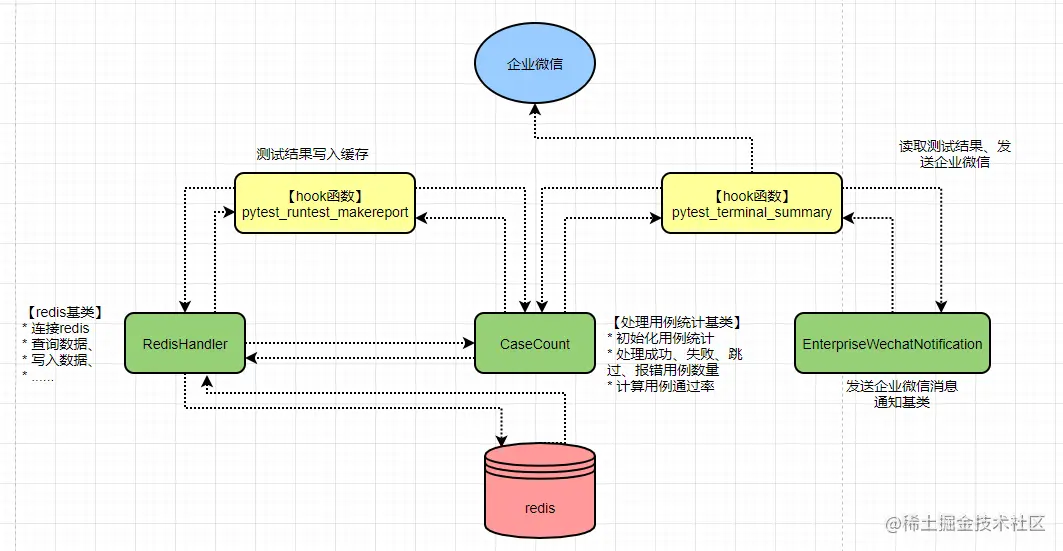 以上就是利用pytest的hook函数:pytest_runtest_makereport、pytest_terminal_summary+redis,实现自动收集测试结果并发送消息通知到企业微信的原理及过程: