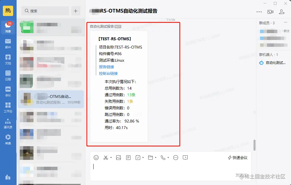 通常,自动化测试用例在执行完成后,都会发送一个结果通知,以提醒测试人员或测试leader测试用例的执行结果。如有测试失败的情况,测试人员再去查看具体的测试报告,检查是哪个场景没有测试通过。当前较为流行的提醒方式有: