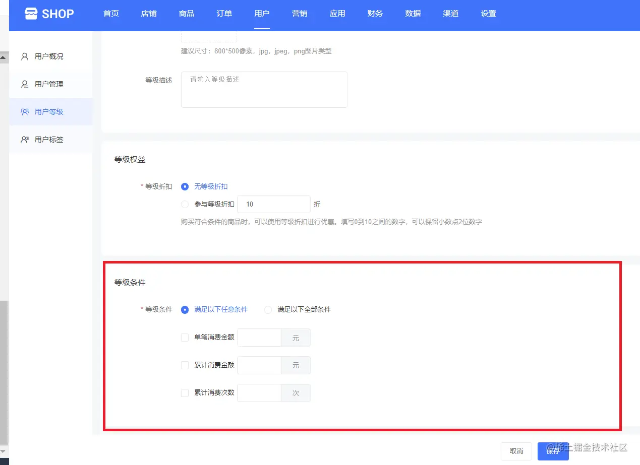(单商户高级版商城系统—用户等级—新增用户等级)