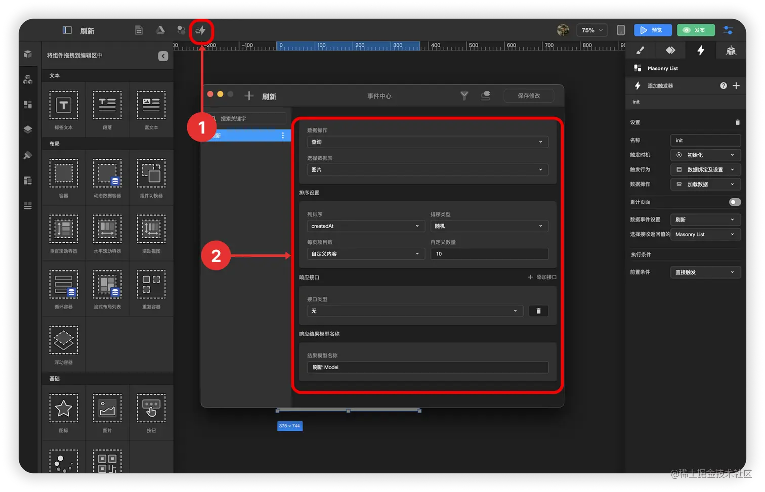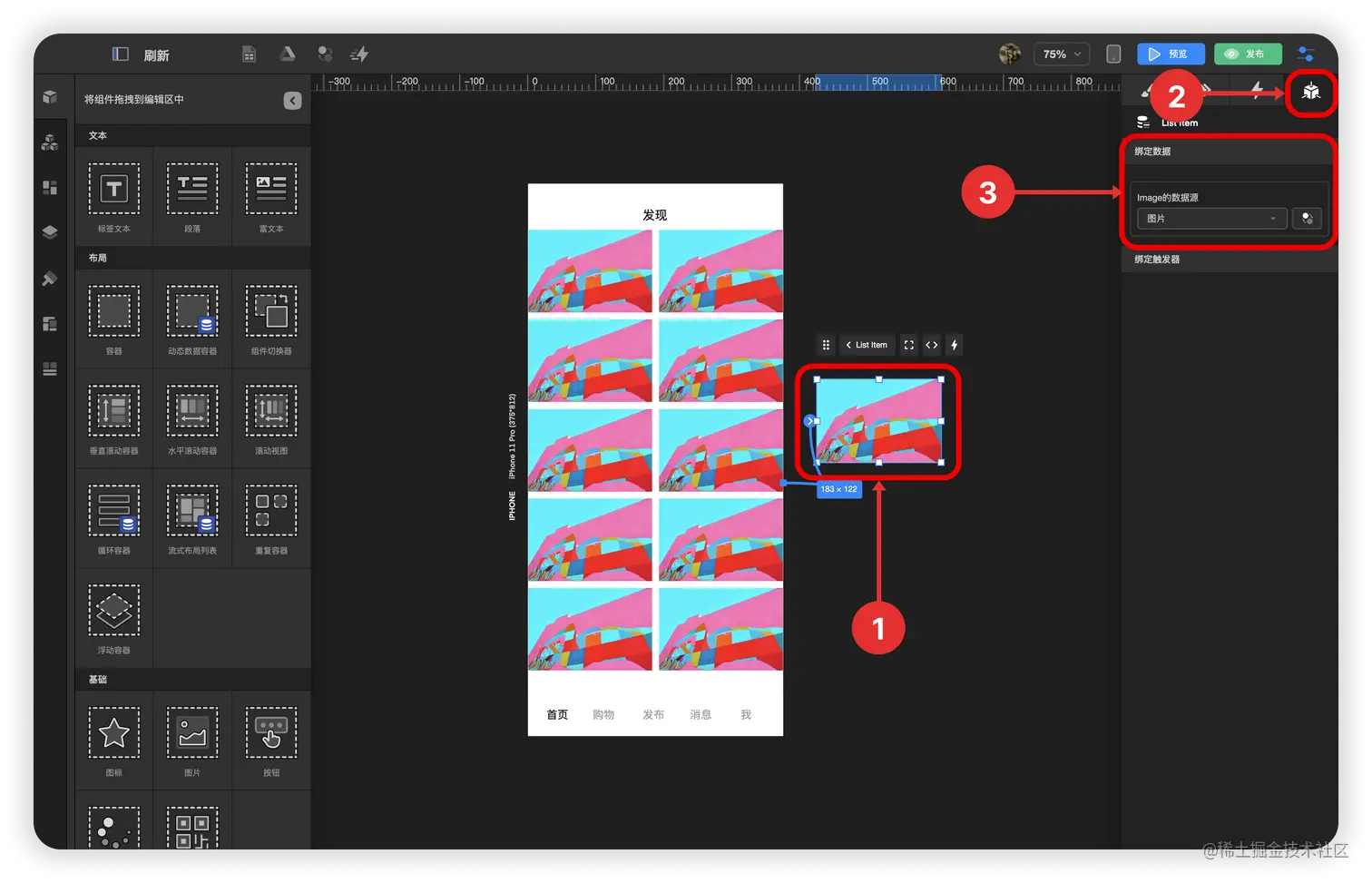 3.1. 选中 流式布局组件 的 循环条目