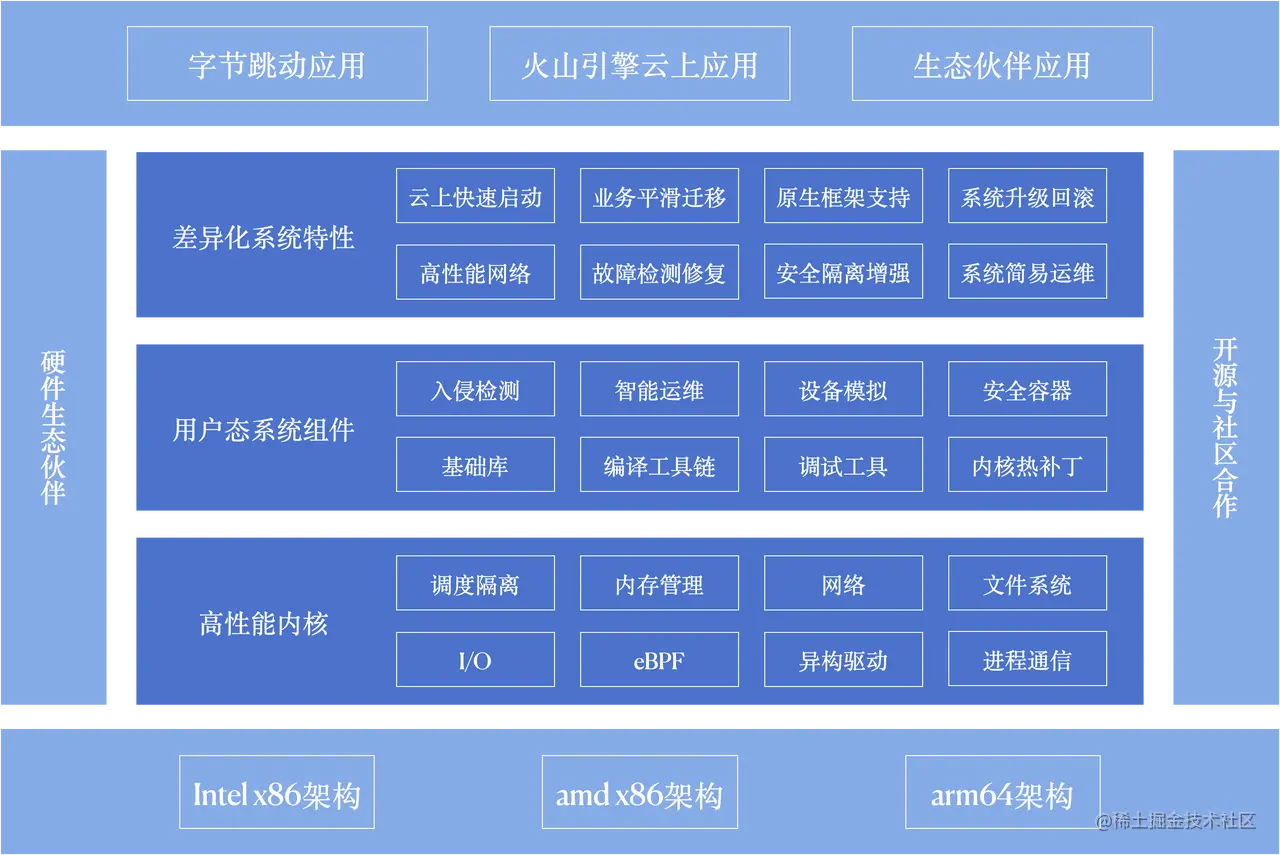 - 向上提供更稳定、更安全、更易用的应用接口,并针对云原生、大数据、机器学习等场景提供针对性优化。