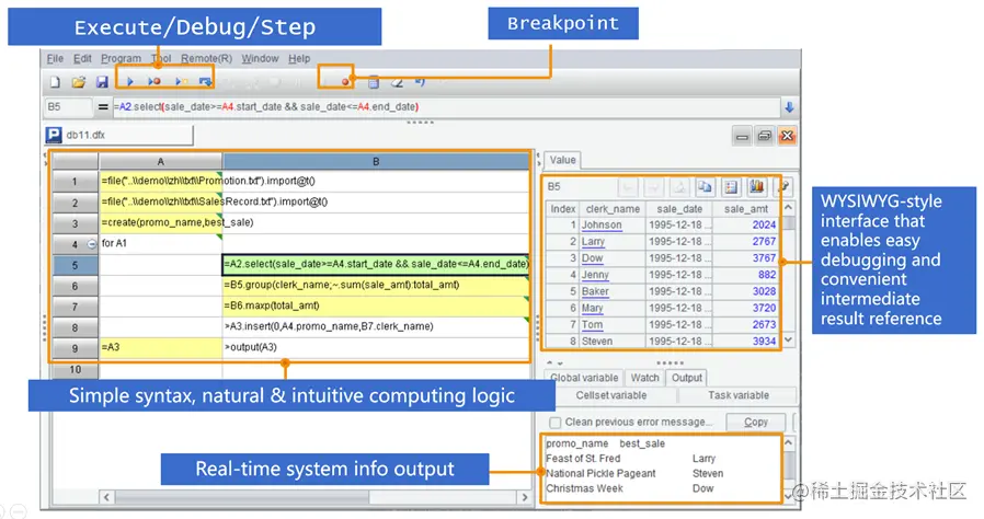 SPL有直观的IDE,提供了方便的调试功能,可以单步跟踪代码,进一步降低代码的编写复杂度。