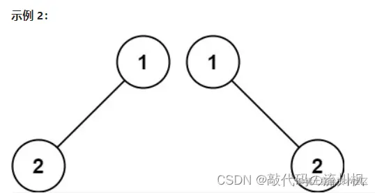 如果两个二叉树都不为空,那么首先判断它们的根节点的值是否相同,不相同则两个二叉树一定不同,若相同,再分别判断两个二叉树的左子树是否相同以及右子树是否相同