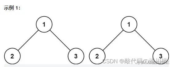 p和q,编写一个函数来检验这两棵树是否相同。如果两个树在结构上相同,并且节点具有相同的值,则认为它们是相同的。