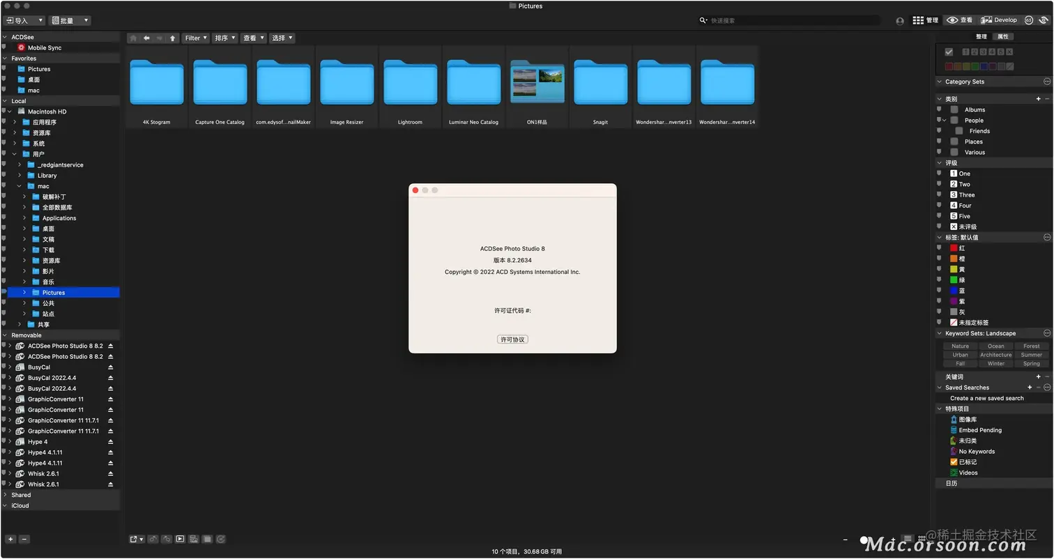 ACDSee Photo Studio for Mac是Mac平台上一款由ACDSee全新推出的数字图像处理软件,acdsee mac中文版能够为您轻松进行图像编辑处理。acdsee for mac具有剪切图像、曝光调整、浮雕特效、镜像、旋转和绘画等功能,ACDSee Photo Studio 8 Mac中文版支持超过450种相机型号的RAW,以及批处理预设、拖放搜索、庞大的数字资产管理功能和完整的非破坏性调整工具包。无需将您的图片导入单独的库中,即可浏览您的图片集。