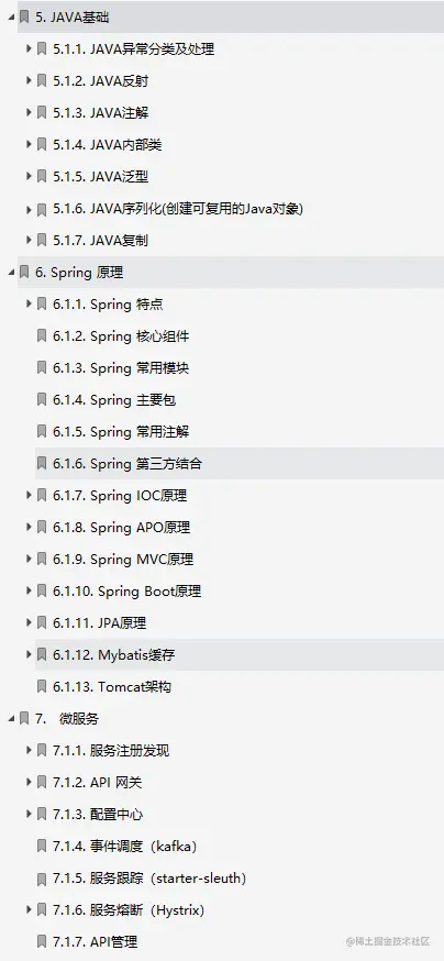 这份手册我看到的时候就感觉很良心,从最基础的内容开始一直到JVM、多线程、Spring全家桶、微服务、网络、消息中间件、数据结构、算法、分布式等等都包含了。并在里面配备了知识点脑图,使读者可以更好地掌握整个知识体系;