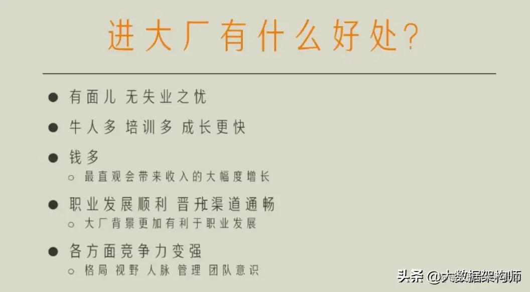 作为程序员,进大厂是大多数人的梦想,进大厂的好处也如下图一样: