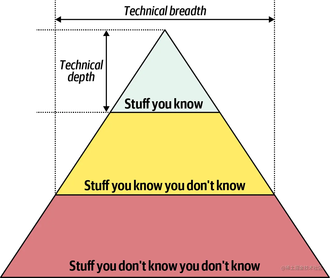 作为开发人员,更加关注知识的深度,以便有足够的知识储备满足工作需要。开发人员在职业生涯的早期,应该关注于自身知识储备的增长,并保持技术深度。