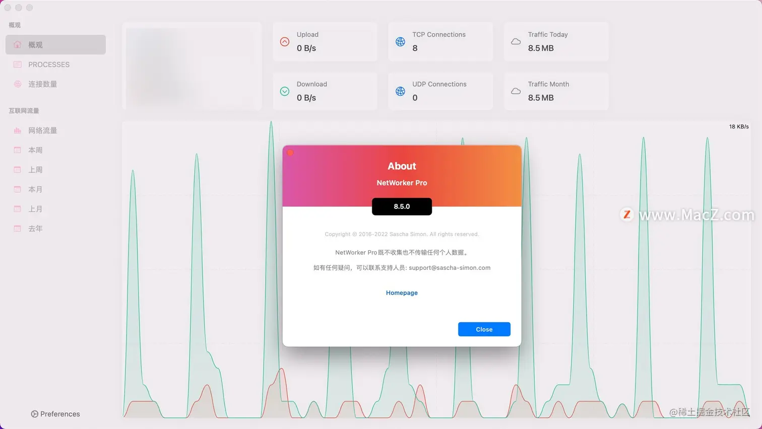 Mac网速显示工具NetWorker Pro 用户4379107122725 2022-10-27 100 阅读1分钟 Mac上好用的网速和流量显示工具是哪个?NetWorker for Mac是一款可以在速度和流量两种模式之间切换的网络监测工具,不仅让您在菜单栏上显示当前的网络上传下载速度,同时,您也可以选择不同的网络模式进行监测。 Mac网速显示工具NetWorker Pro