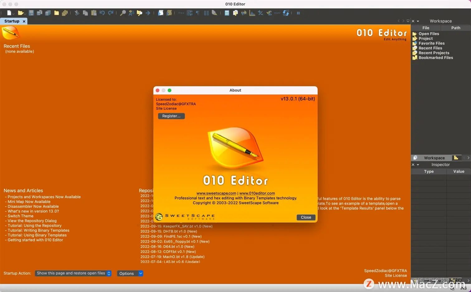 010 editor mac版是一款十六进制编辑器,主要就是用来编辑二进制文件的。010 editor mac版不仅能够快速有效的编辑二进制文件,还可以打印十六进制的字节并以书签的方式标出某些重要字节。010 Editor下载拥有着友好易操作的用户界面,完全支持二进制模板系统。软件内置了强大的模块、脚本操作,只需要用户将一个类型的二进制文件进行定义模块,以后这您需要进行编辑相同类型文件的时候,即可调用以前的模块进行使用,可以自动进行分析。