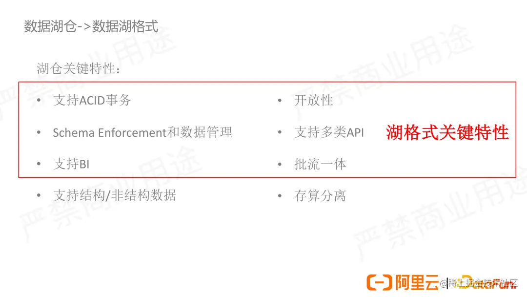 如上,我们可以发现湖仓大部分的特性是由湖格式来承载和支持的,这就是当前 Delta Lake,Iceberg 和 Hudi 能够兴起的主要背景和原因。