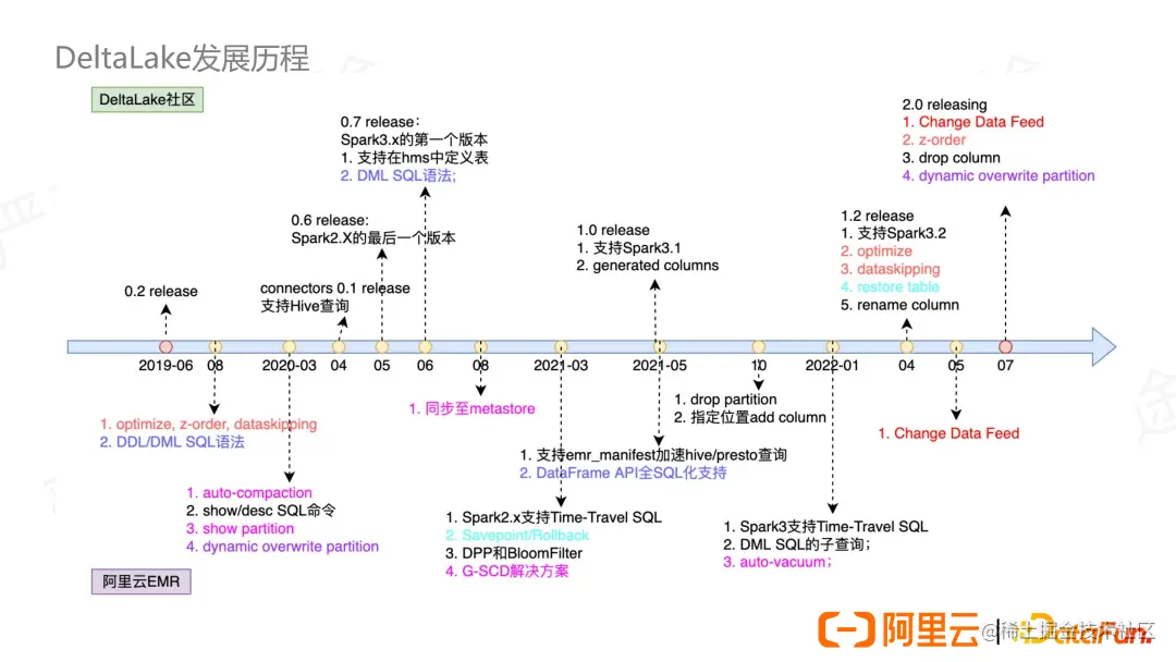 我们接下来看一下 Delta Lake 的功能迭代和发展历程。