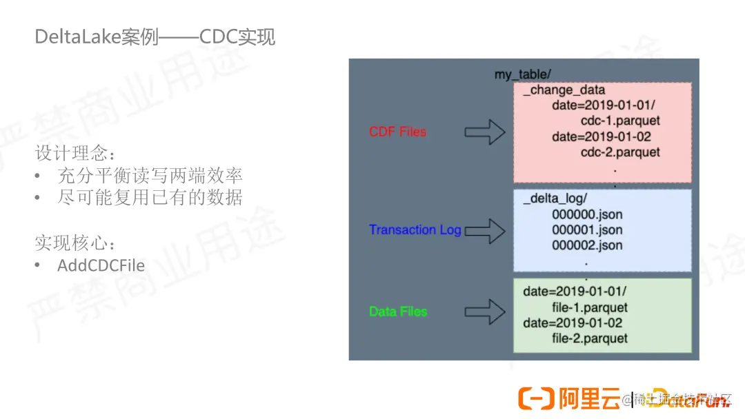 如上图,CDF 方案下持久化的 CDC 写入到单独的 _change_data 目录下(图中红色部分)。