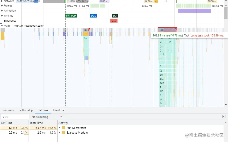 依据:在chrome devtools栏检测到存在长任务(官网项目长达200多毫秒)