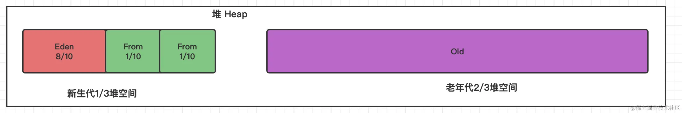 -XX:NewRatio=2,表示新生代占1,老年代占2,新生代占整个堆的1/3