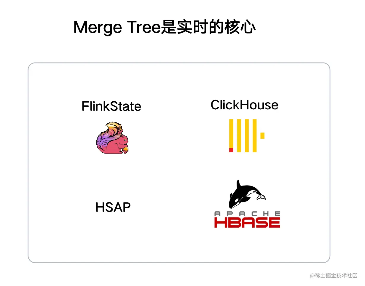 Merge Tree 是用于实时计算核心的内部基础,FlinkState, ClickHouse 及 HBase ,包括 HSAP ,都是基于 Merge Tree 的。Merge Tree 本身支持大量快速更新的能力,包括更新写增量文件 ,以及基于 Sorted File 按需 Merge。
