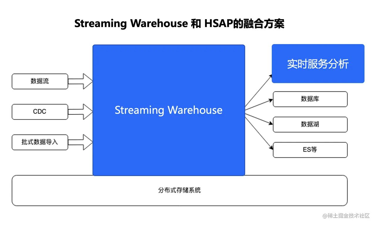 字节通过 实践将 Streaming Warehouse 流式 数仓 和实时服务 分析 进行融合,Streaming Warehouse 做数据处理, 实时服务分析 做数据服务,两者结合可以解决三个问题:
