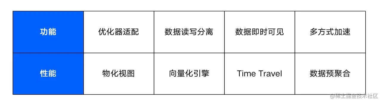 - 多方式加速查询,通过 SSD、RDMA、PMEM、内存等手段,提升查询及 Shuffle 效率