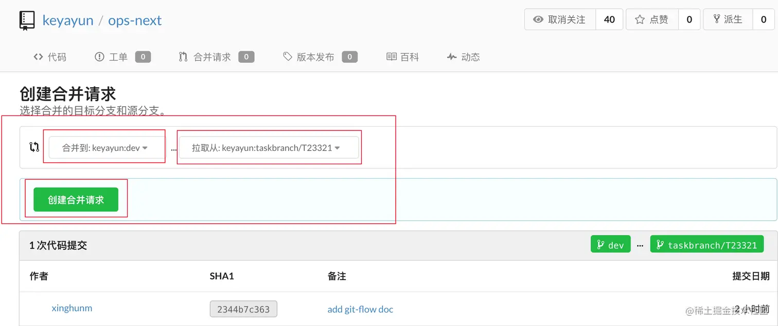 到仓库管理界面点击创建合并请求