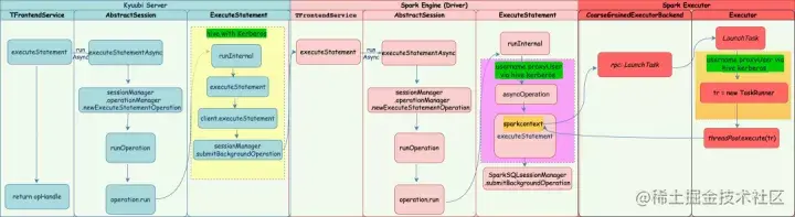 kyuubi server端由超级用户Hive启动,在spark场景下driver和executor共享同一个的用户名。不同的用户提交不同的sql, driver端和executor端无法区分当前的任务是由谁提交的,在数据安全、资源申请和权限访问控制方面都存在着问题。