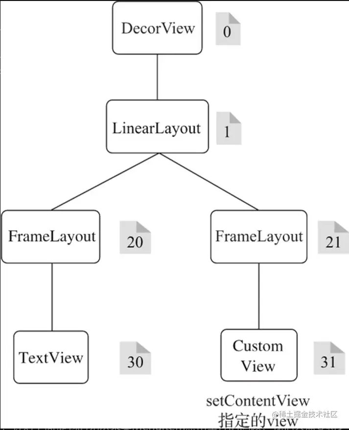 android.R.id.content对应的视图是一个FrameLayout布局,它目前只有一个子元素,就是我们平时开发的时候,在onCreate方法中通过setContentView设置的View。换句说法就是,当我们在layout文件中设置一个布局文件时,实际上该布局会被一个FrameLayout容器所包含,这个FrameLayout容器的android:id属性值就是android.R.id.content