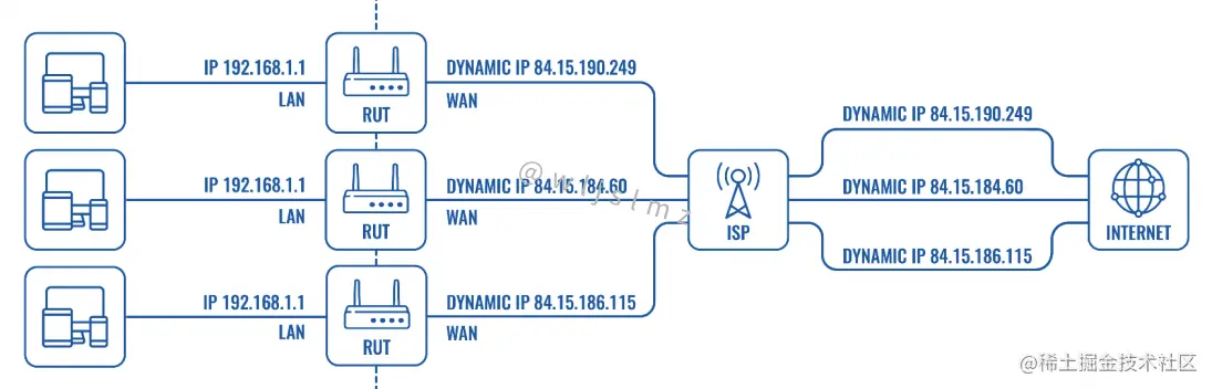 对于家庭用户,ISP(运营商) 可以提供一个或多个公共 IP 地址(通常是付费服务)。