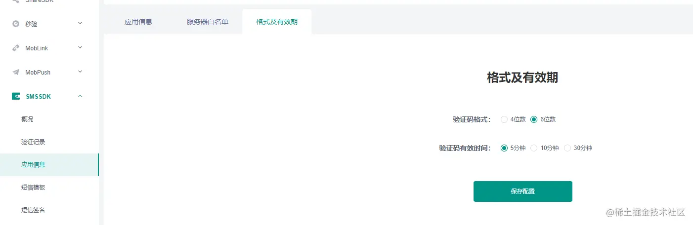 短信验证码有效期默认5分钟,格式默认4位数,可在Mob开发者后台应用中调整