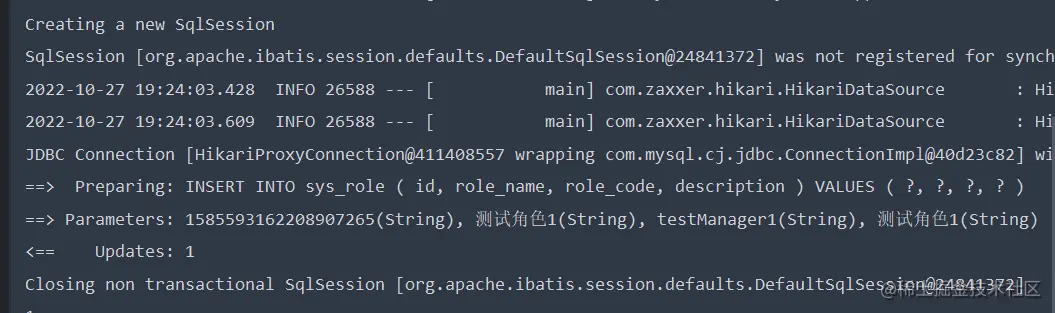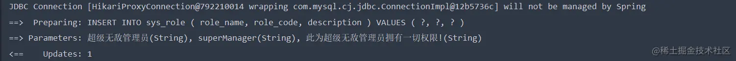 这里会发现插入的id值是一个非常长的值,这里我们需要更改Sys_Role的id的主键策略,因为MybatisPlus对于主键的默认主键策略是一个名为IdType.ASSIGN_ID的常量,他代表的是一个雪花算法的策略,就是在添加的时候主键id的值会填充一个19位的数。