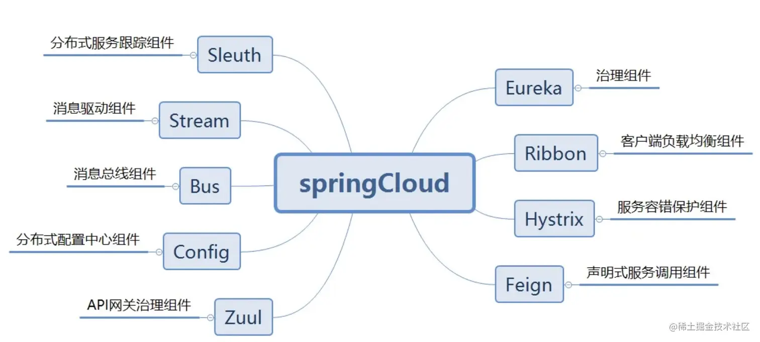 目前在分布式系统中,springcloud 是一个很好的分布式系统解决方案,在此基础之上就可以了解 springcloud alibaba 的解决方案。在本文中将介绍 springcloud 的核心组件以及其作用。