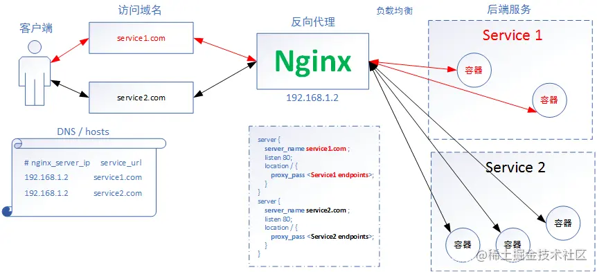 首先, 用户通过两个域名请求到nginx, 我们看到这两个域名指向的nginx是同一个. 然后再nginx中配置了两个server反向代理. server1.com 反向代理到server1服务器, server2.com反向代理到server2服务器. 这里后端服务没有指定ip地址,而是endpoint. 之前也说过原因. 接下来, 我们就来部署这个nginx-ingress.