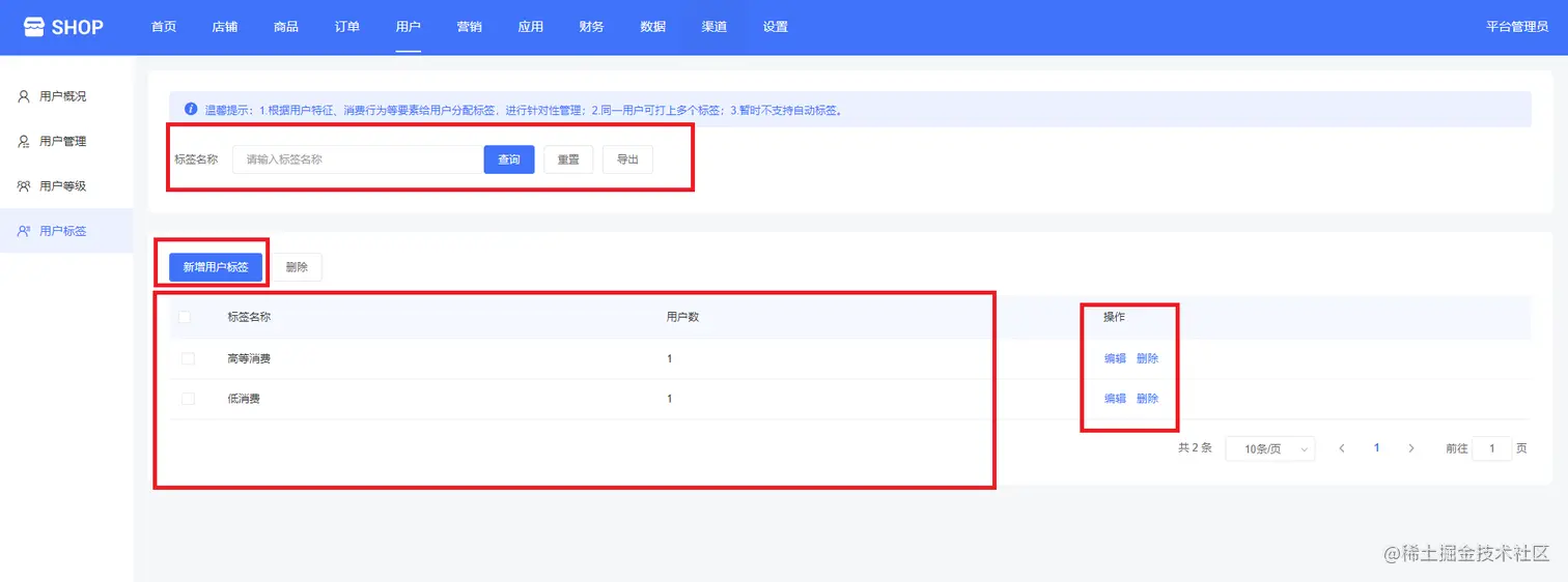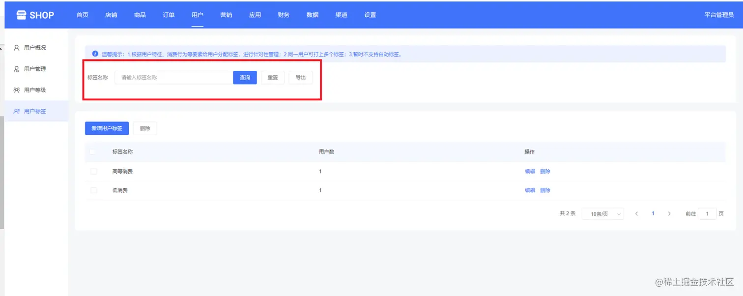 (单商户高级版商城系统—新增用户标签)